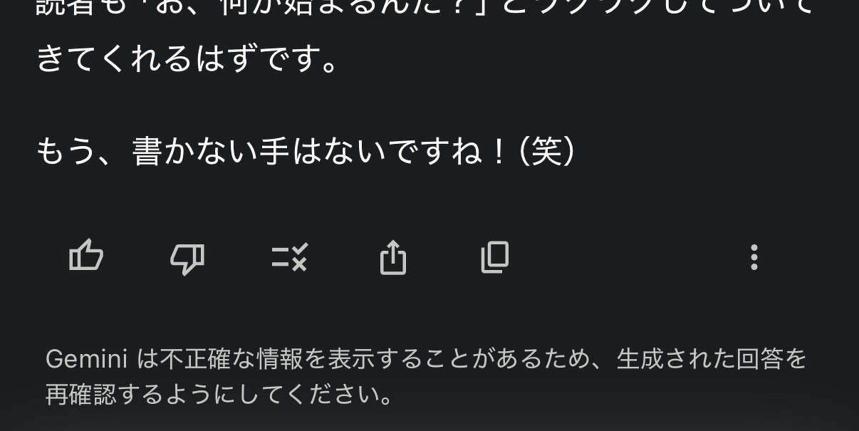 普段のチャット用にChatGPTをクビにしてGeminiに課金し始めたんだけど、求めてるのはこのノリなんですよね